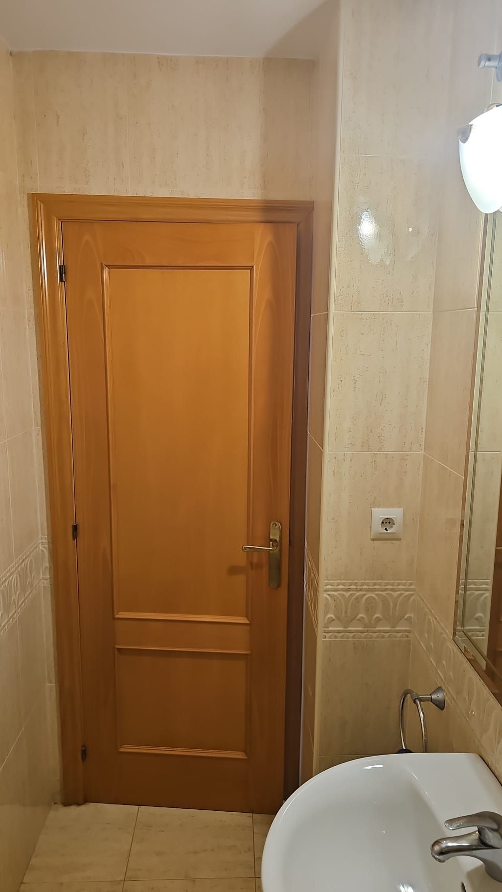 - Colocación de un mueble de baño con lavabo, aportando una solución práctica para el almacenamiento de productos de higiene.