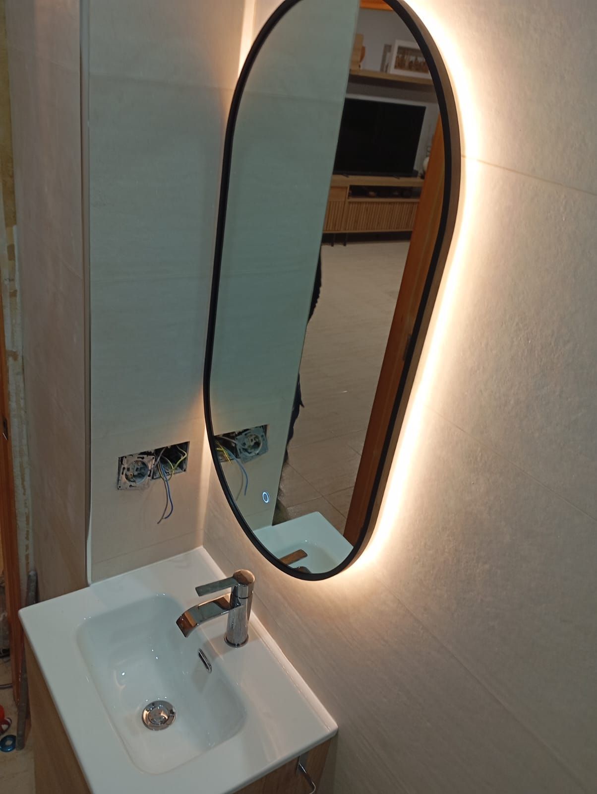 - Espejo con luces LED, que mejora la iluminación y aporta un toque moderno y elegante al baño.